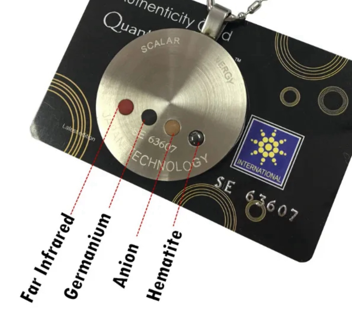 A concentric scaler energy pendant with magnet for cellular protection when around man-made EMFs generated by TVs, computers, and phones. Includes an Infrared energy conductor to release pain and improve circulation, 2 Germanium stones to improve immune system, and 1 magnet to reduce inflammation.