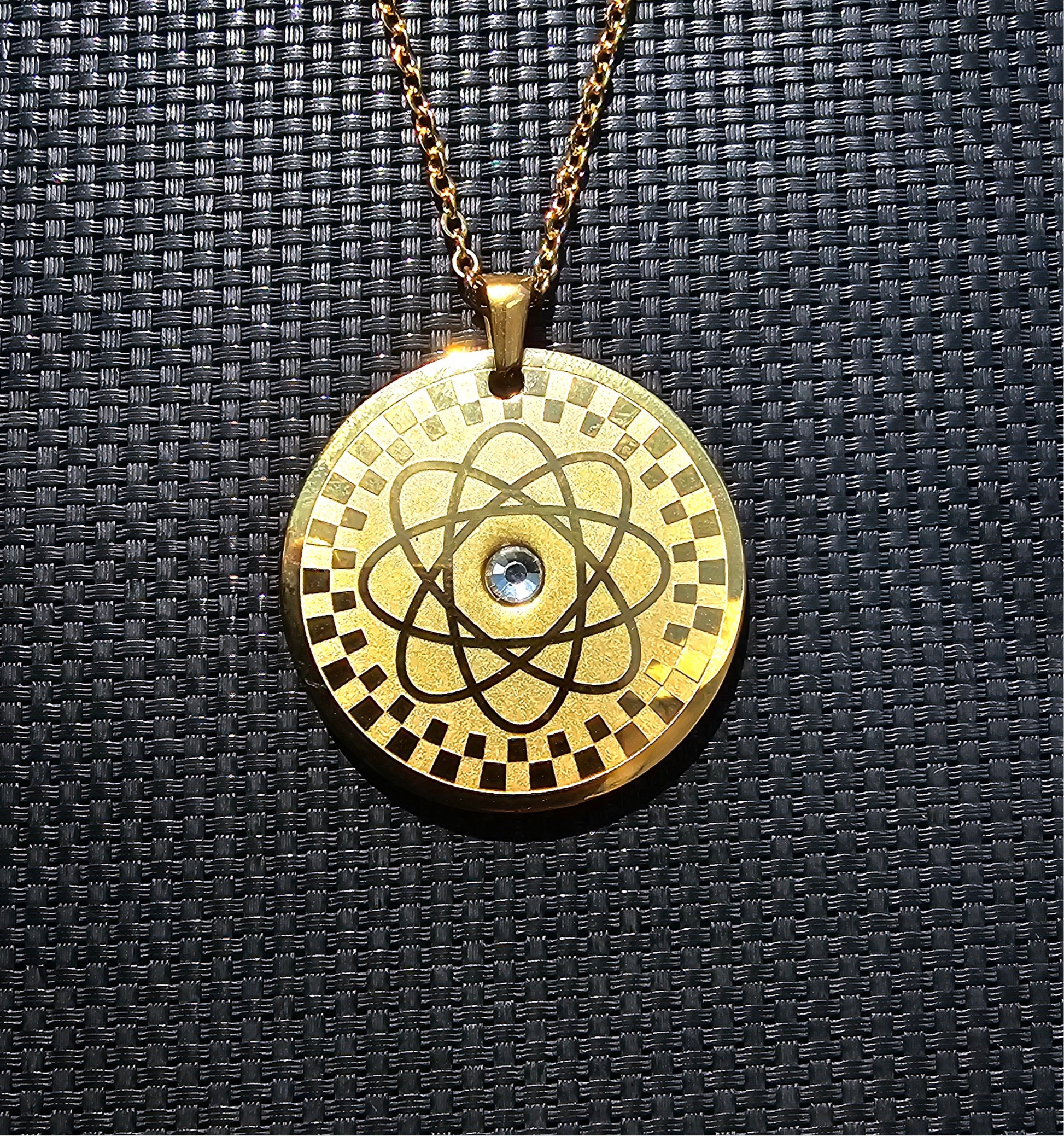 Atomic scaler energy pendant for cellular protection when around man-made EMFs generated by TVs, computers, and phones. Stainless pendant includes an Infrared energy conductor to release pain and improve circulation, Germanium stone to improve immune system, and Negative Ions.